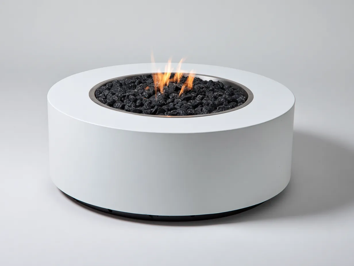 Table brasero de jardin ronde en matériau composite 90x90x40 cm - blanc - foyer central décoratif - style moderne